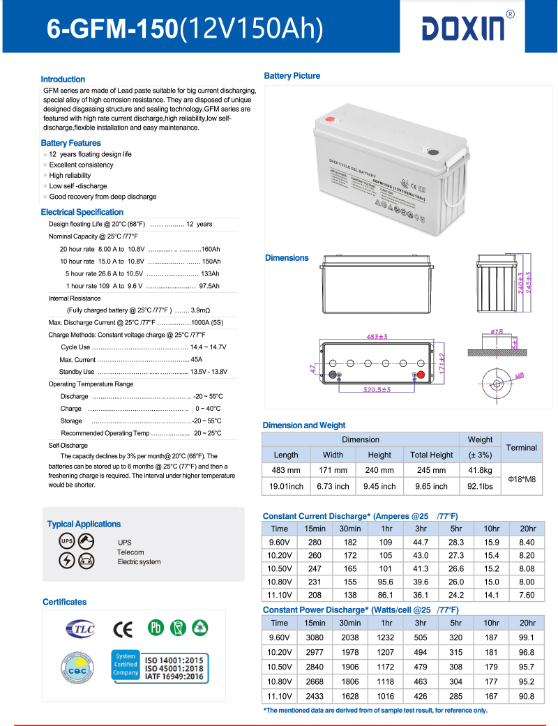 10. Positive plate: flat glued type, high temperature and moisture forming techniques1l. separator: High porosity polyethylene separator with fiberglass, good cyclic properties and lower resistance